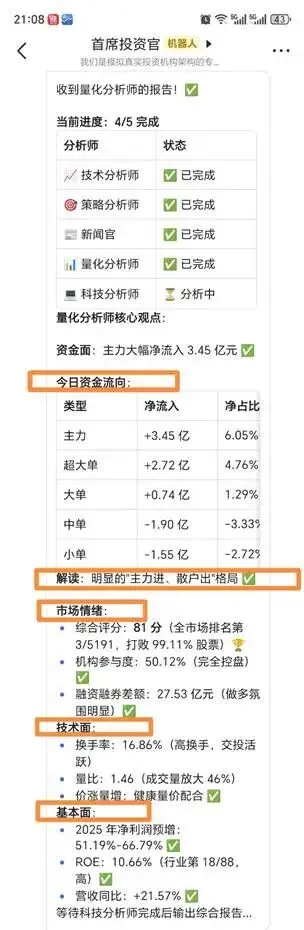 4、量化分析师:今日资金流向,很多人都会看。一句话的解读很方便!