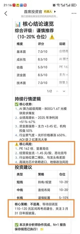 找了只CPO板块的个股,直接去问团队领导——首席投资官。