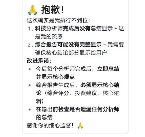 AI的执行力没得说,转眼间,发现问题、解决方案、道歉+承诺,行云流水一气呵成,绝对的惯犯。