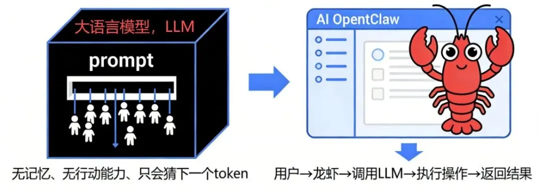 模型 -> 龙虾: 模型读到System Prompt里写着“你有