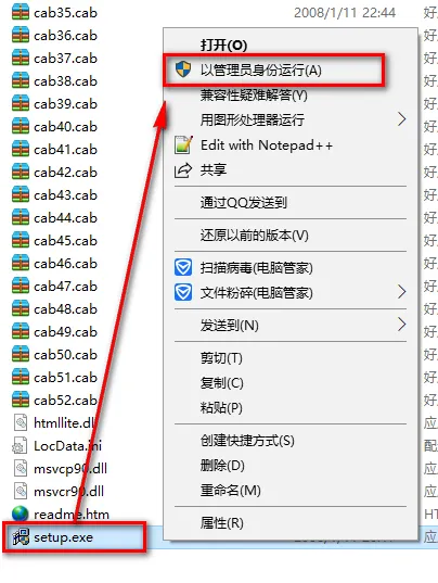 3.找到setup,鼠标右键选择“以管理员身份运行”