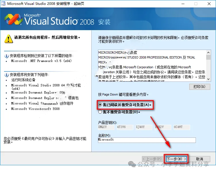 7.点击“我已阅读并接受许可条款”,点击“下一步”
