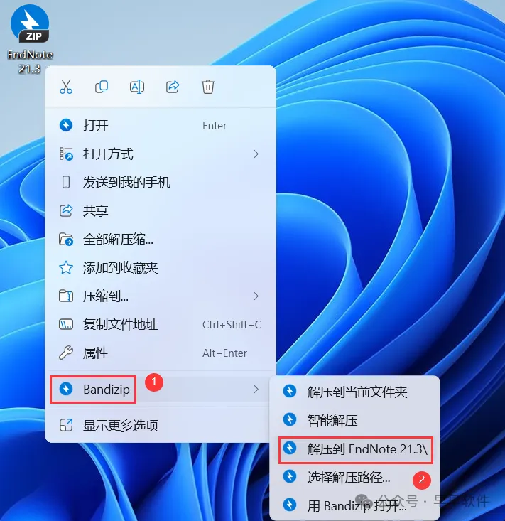 1、下载EndNote 21.3软件安装包到电脑上,右键选择【解压到EndNote 21.3\】