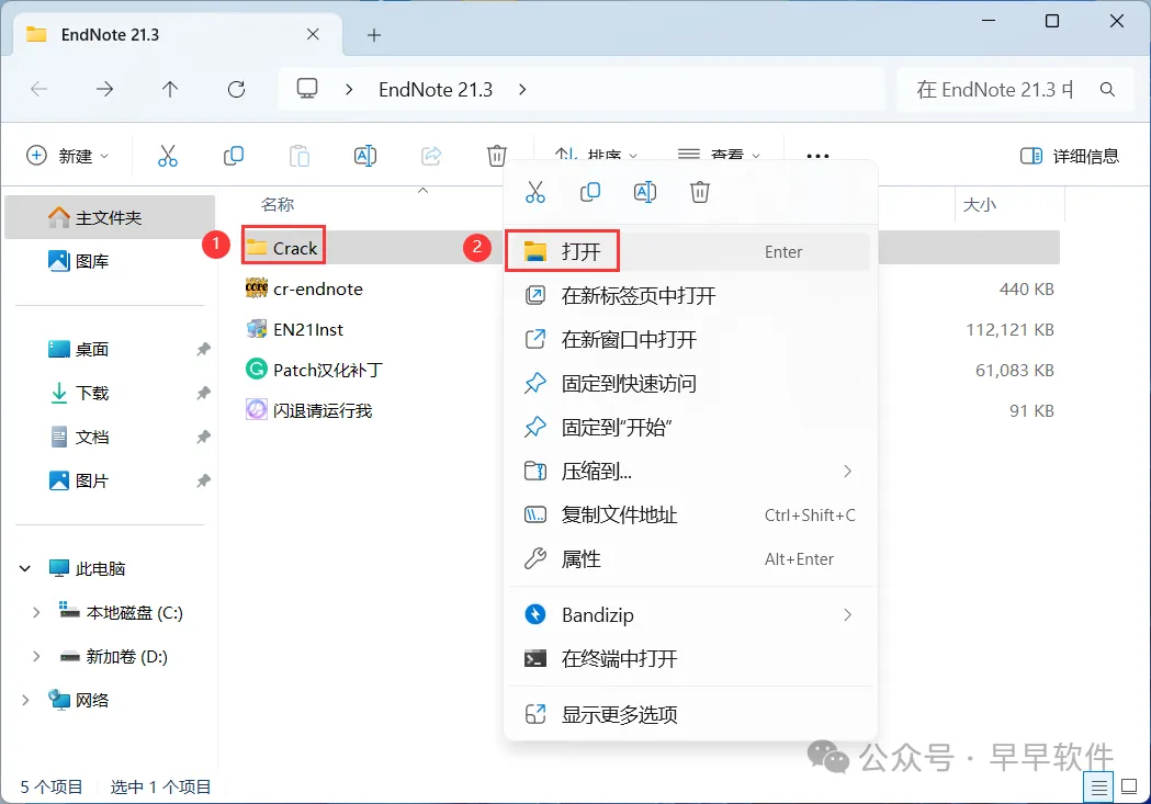 14、回到EndNote 21.3文件夹,找到【Crack】文件夹,右键【打开】它