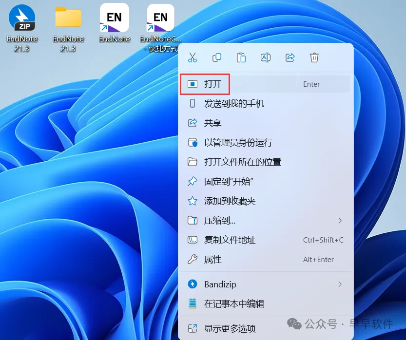 18、回到桌面,右键桌面上的【EndNoteCHS快捷方式】,点击【打开】