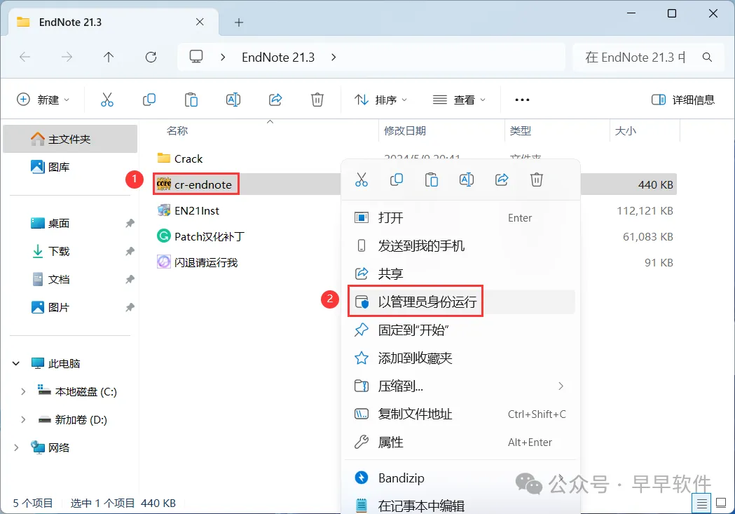 21、回到EndNote 21.3文件夹,找到的【cr-endnote】程序,再右键选择【以管理员身份运行】它