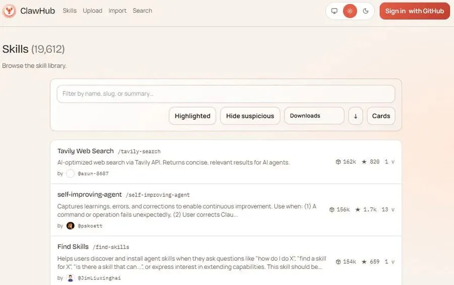 ClawHub技能市场(1.9w+ Skills搜索/安装):