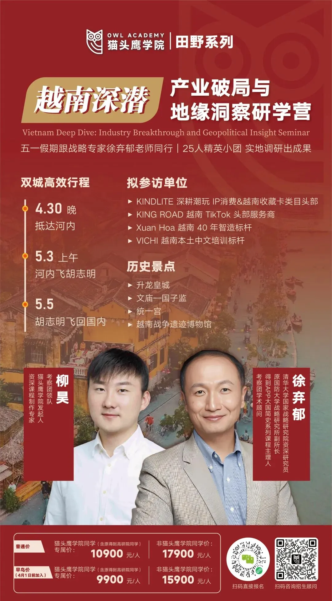 这个五一劳动节,我们猫头鹰学院荣幸地邀请了战略专家徐弃郁老师带领我们一起,深入越南🇻🇳河内与胡志明市,实地调研产业变迁、电商消费与地缘政治,在25人精英小团中完成深度研学。