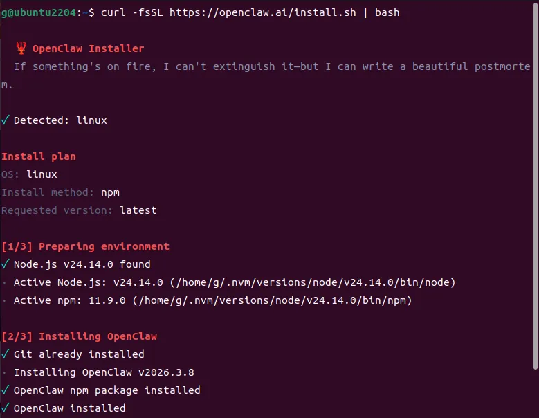 curl -fsSL https://openclaw.ai/install.sh | bash