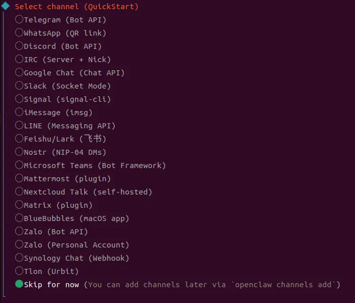 选择channel,这里先跳过,可以后续再添加