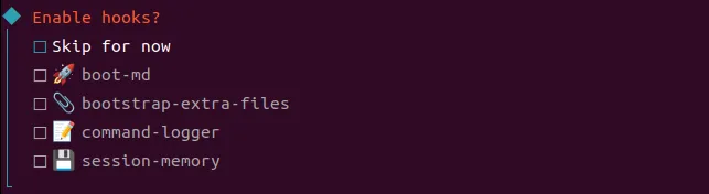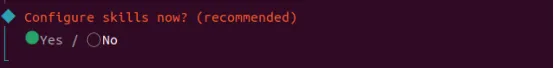 配置skills,可以选No,这样后边两步就可以略过,直接到hooks。