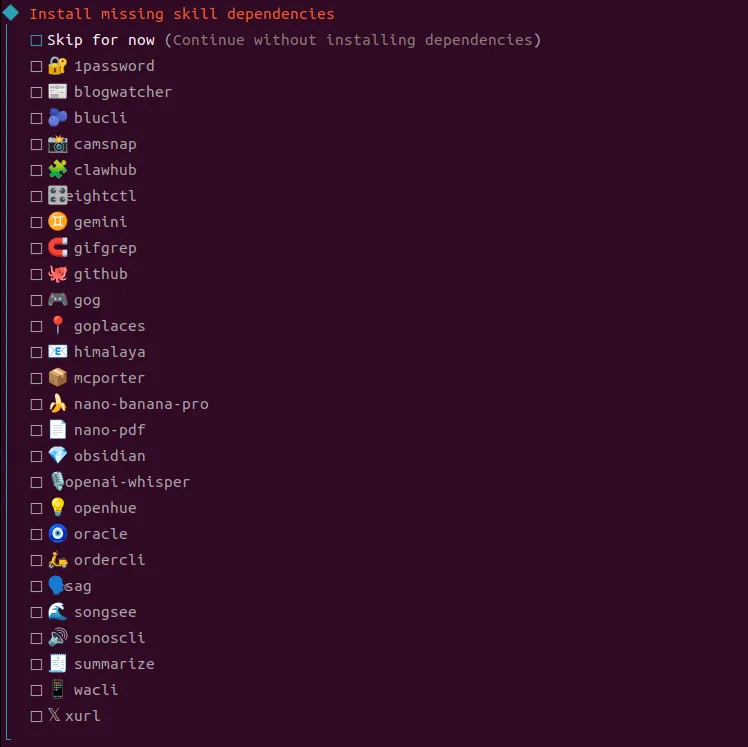 安装skill依赖,不知道安什么可以跳过。