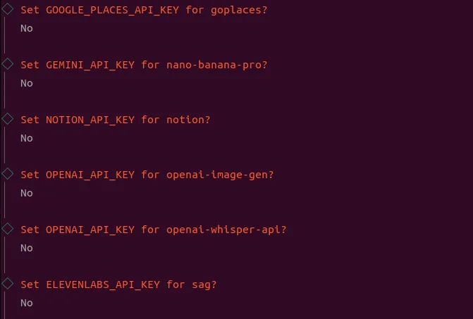 设置各种API KEY,不知道就选NO