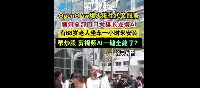 上周,深圳腾讯大厦北广场,近千人在楼下排队——不是领免费的米面油(虽然本质一样),是为了让腾讯云的工程师帮自己免费装一个OpenClaw,也就是小龙虾。