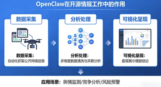 在信息化战争时代,情报优势越来越依赖于对海量公开信息的快速捕捉与分析。随着互联网、商业卫星、社交媒体以及全球数字化基础设施的发展,大量具有军事价值的信息开始以“开源”的形式出现在公共空间之中。如何在庞杂的信息环境中快速发现、筛选并整合这些数据,已经成为各国军事研究机构、战略智库和防务分析部门重点关注的问题。近期,一种被称为OpenClaw(俗称:“龙虾”)的智能化信息获取框架系统逐渐在开源情报领域受到关注。与传统大模型或单一智能体不同,OpenClaw更强调自动化情报抓取、结构化处理与多源数据协同分析,其目标是构建一个能够持续运行的自动化开源情报捕获系统。