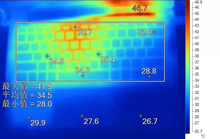 3,散热表现好,键盘表面温度低