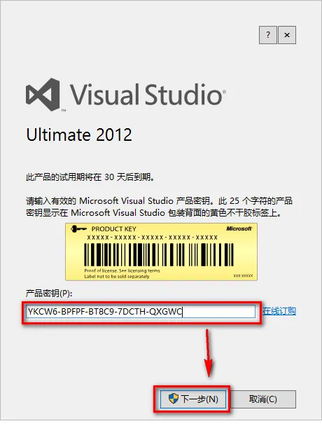 8.在解压出的文件夹中找到激活码,双击打开,Ctrl+C复制激活密钥后,Ctrl+V粘贴至“产品密钥”处,然后点击“下一步”