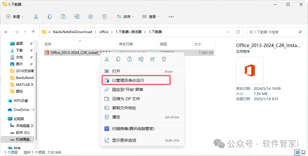 3.以管理员身份运行【Ofiice2013-2024】