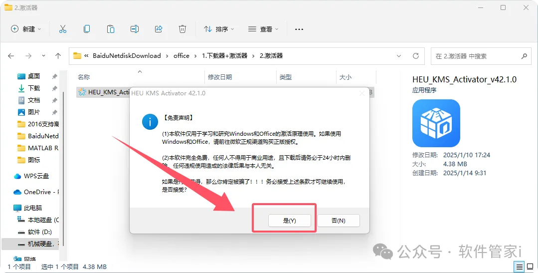 启动激活工具并以高级权限执行程序内部文件