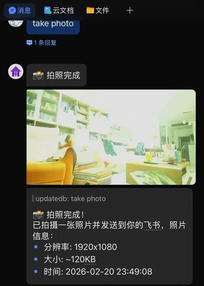 这是第一张图吧,刚配好飞书,我让他拍张照片。一切未知的情况下,一张照片发给了我,那感受真是五味杂陈。