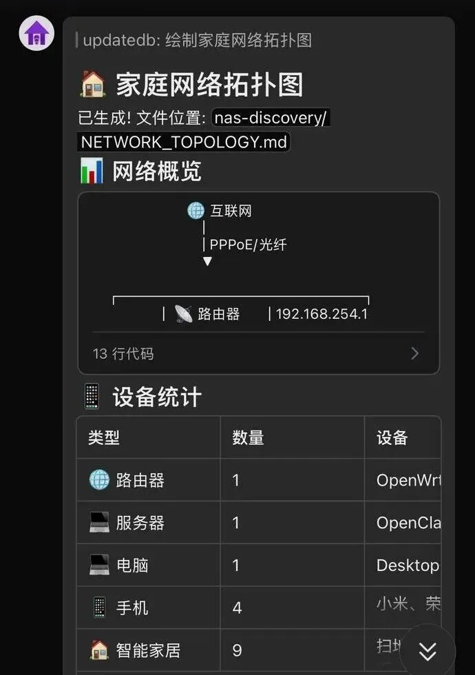 4)让它画我家网络拓扑:它不光画了图,还建议我进行安全检查