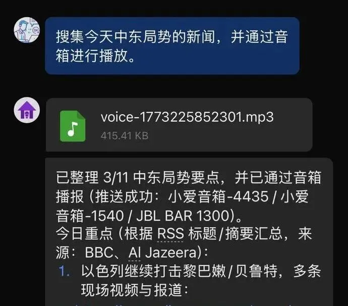 声音效果还不错,但重点是所有要播报的内容我都让实时汇总,随时可以定制内容。