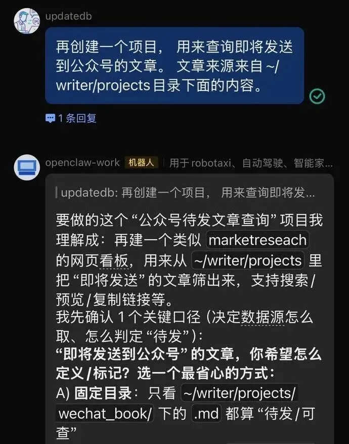 这个最离谱,会前需求和流程不清楚,只有一些杂乱的建议。按传统流程:你起码得先把需求写清,再排期,再开工。我像往常问chatgpt一样,就直接把不清楚的东西丢给小龙虾。