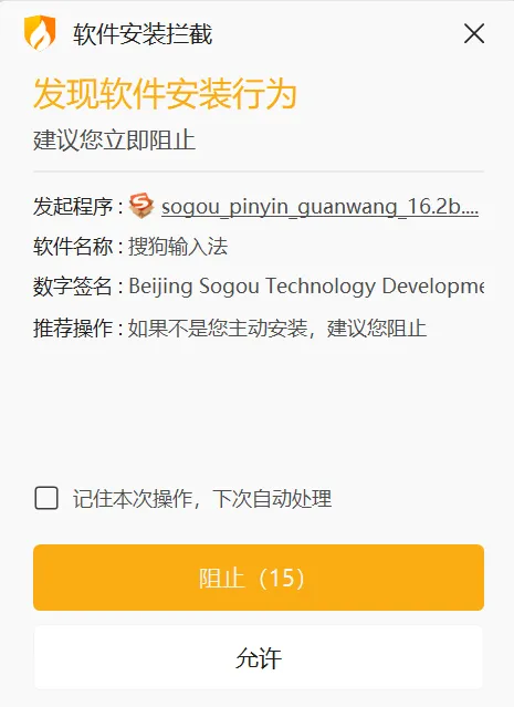 这是安全软件在保护你。 如果你是自己主动安装的,点“允许”就行。