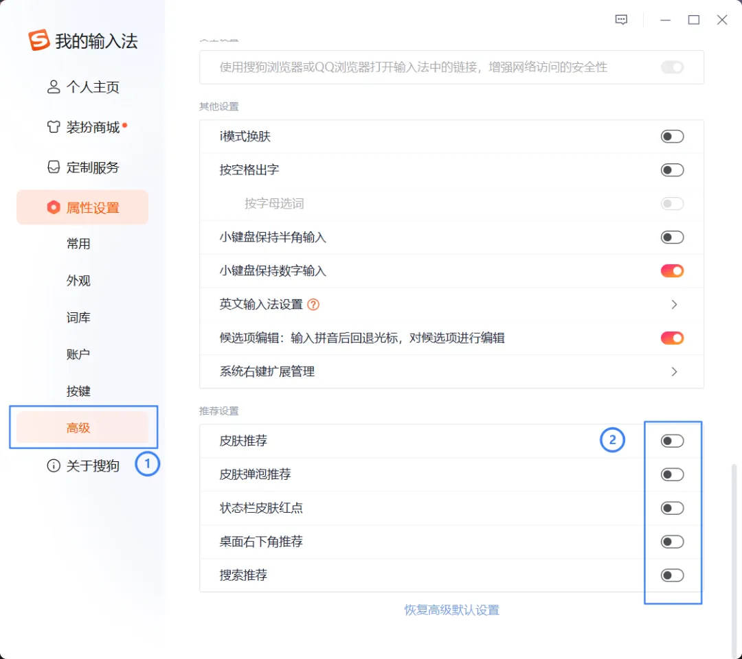 但记得把前面教的那些推荐、弹窗都关掉,这样既能同步词库,又不会有烦人的弹窗。