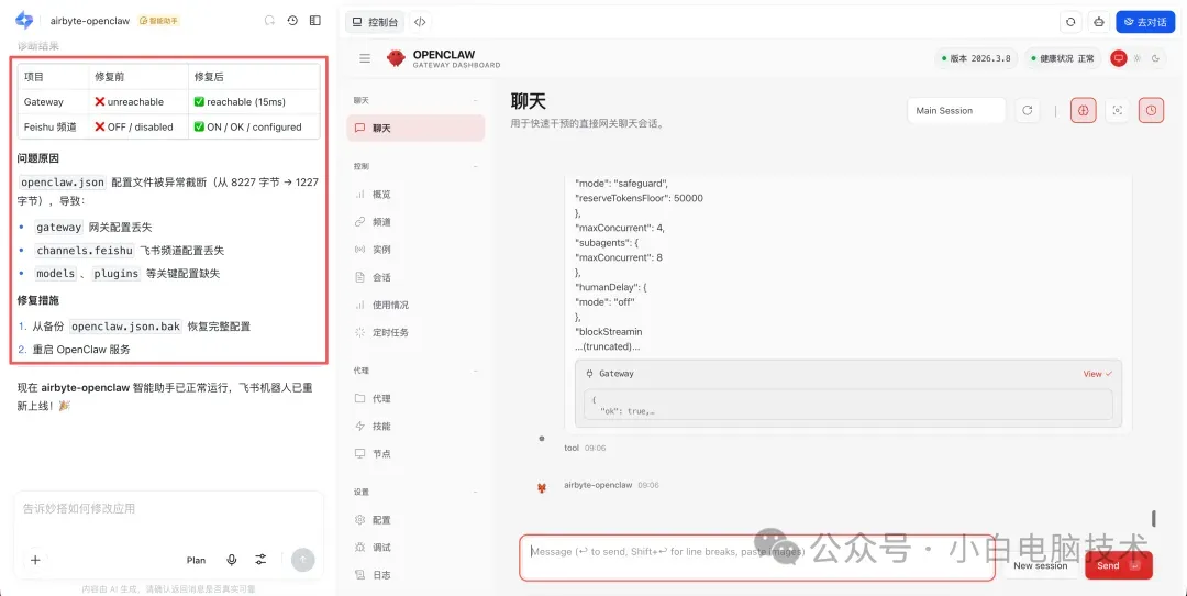 小白测试的时候手痒,改了些配置,结果——龙虾崩了。