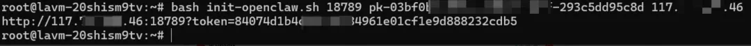 bash init-openclaw.sh 18789 pk-03bf0b76-8326-4ad7-91bf-293c5dd35c8d 公网IP