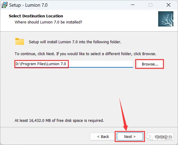 5、软件默认安装在C盘,可自定义更改软件安装位置,这里小编选择安装在D盘;点击【Next】
