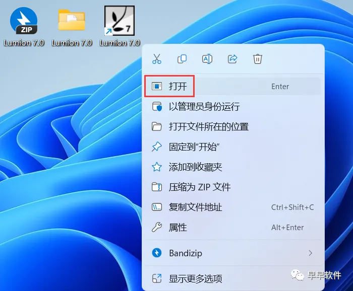 10、回到桌面,右键桌面上的【Lumion 7.0软件图标】,点击【打开】