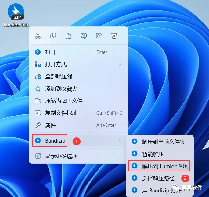 1、下载Lumion 9.0软件安装包到电脑上,右键选择【解压到Lumion 9.0\】
