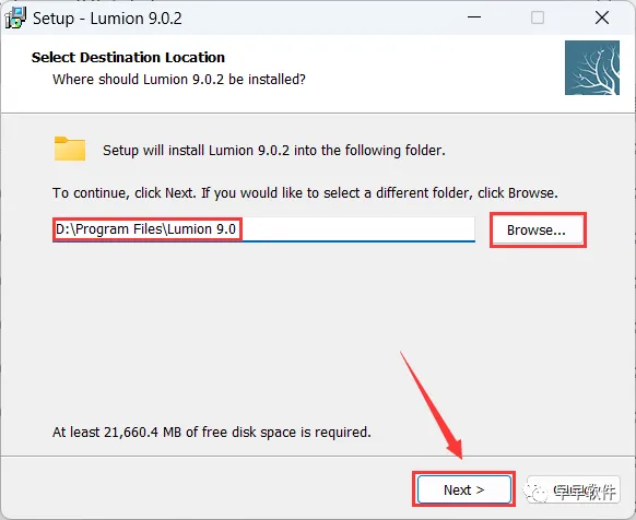 5、软件默认安装在C盘,可自定义更改软件安装位置,这里小编选择安装在D盘;点击【Next】