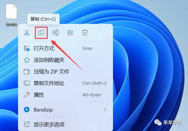 16、回到桌面,找到【hosts】文件,右键点击【复制按钮】
