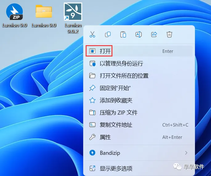 28、回到桌面,右键桌面上的【Lumion 9.0.2软件图标】,点击【打开】