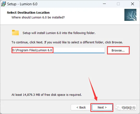 5、软件默认安装在C盘,可自定义更改软件安装位置,这里小编选择安装在D盘;点击【Next】