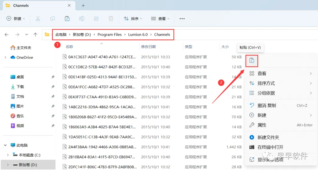 22、打开路径:D:\Program Files\ Lumion 6.0\Channels,再右键文件夹的空白处,点击【粘贴按钮】