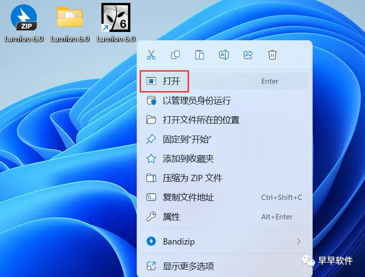 24、回到桌面,右键桌面上的【Lumion 6.0软件图标】,点击【打开】