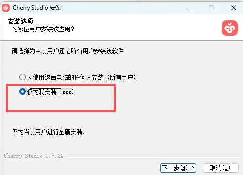 3、以管理员身份运行【Cherry-Studio-1.7.24-x64-setup】。
