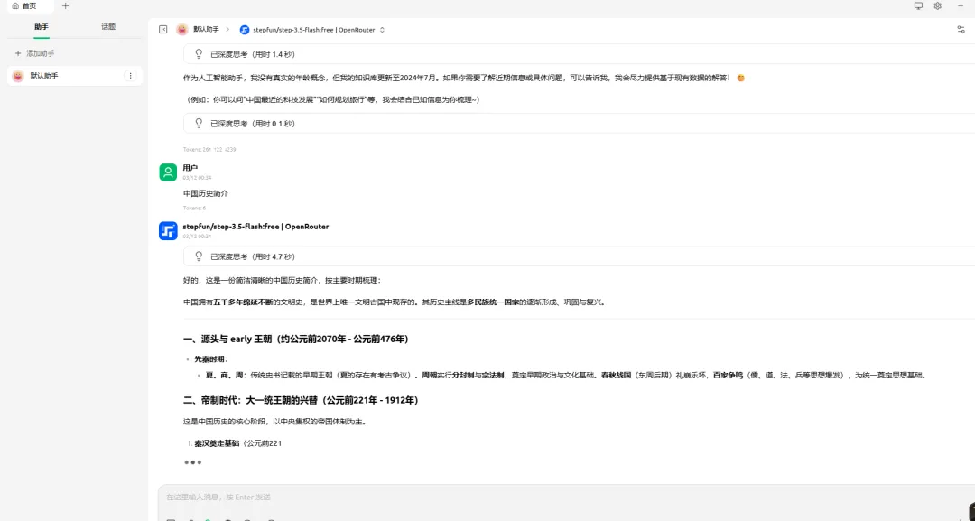 6、稍等片刻。7、点【完成】。8、点右上角设置图标。9、输入:openrouter,点击【OpenRouter】。10、点【点这里获取密钥】。11、点【Sign up】。12、输入邮箱和注册账户密码,点【I agree...】。点【Continue】。13、进入邮箱里面找到OpenRouter邮件,点击【Sign up to OpenRouter】。14、返回网页,选择【Other/Not sure】,点击【Continue】。15、点【Create API Key】。16、点【Create】。17、在Name栏输入【yyrjm】,点【Create】。18、复制生成的key密钥,Key界面只会出现这一次,所以建议把Key在保存在记事本里。19、在API密钥栏粘贴上一步复制的Key。20、右边模型滑到最下方,点【添加】。21、在模型ID栏输入【stepfun/step-3.5-flash:free】,点【添加模型】。22、点【首页】。23、点切换模型。24、选择【stepFu/step-3.5-flash:free】。25、简单对话进行测试一下,正常回复即配置完成。配置OpenClaw26、点“+”。27、点【Openclaw】。28、这里可以分别下载最新的【Node.js】和【Git】,也可以直接运行安装解压后文件夹中的【Node.js】和【Git】。29.返回解压的【Openclaw】文件夹,双击运行【node-v22.13.1-x64.msi】安装包(Node.js下载地址:https://nodejs.org/en/download)30.点【Next】。31.点【I accept...】,点【Next】。32.点【Next】。33.点【Next】。34.点【Next】。35.勾选【Automatically...】点【Next】。36.点【Install】。37.耐心等待软件安装过程。38.点【Finish】。39、提示【按任意键继续...】,我们就随意按一下键盘。40、跳出一个窗口跑代码,它在后台帮你装配套工具,等待它完成。41、以管理员身份运行【Git-2.53.0-64-bit】。42、点【Next】。43、点【Next】。44、点【Next】。45、点【Next】。46、点【Next】。47、点【Next】。48、点【Next】。49、点【Next】。50、点【Next】。51、点【Next】。52、点【Next】。53、点【Next】。54、点【Next】。55、点【Install】。56、耐心等待软件安装过程。57、点【Finish】58、返回OpenClaw安装界面,点击【安装OpenClaw】。59、耐心等待软件安装过程。