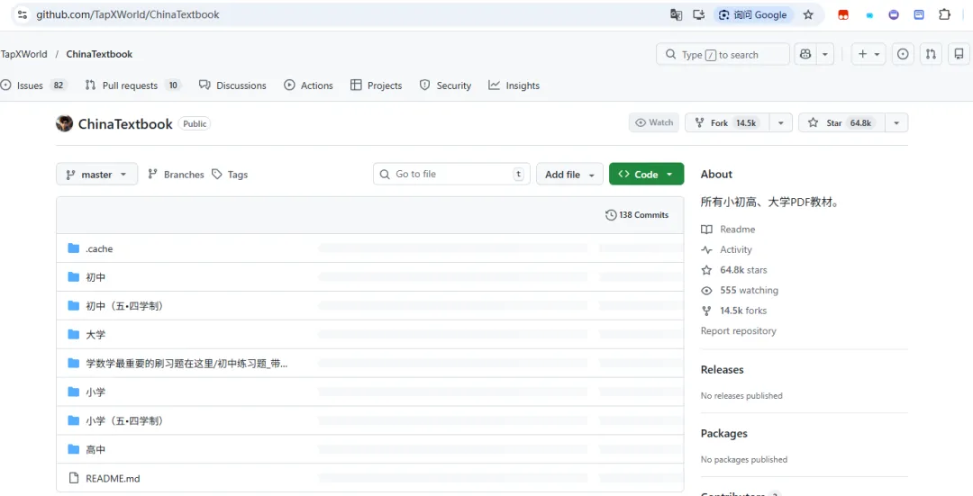 这个仓库收录了从小学、初中、高中到大学的大量 PDF 教材。以前如果想批量下载相关教材,不仅容易遇到网络问题,还常常需要一个一个手动点开保存,效率很低。