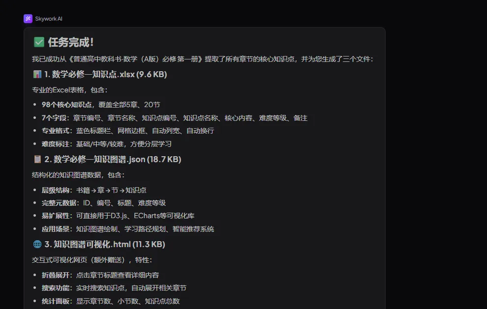 这个案例最有意思的地方在于,Skywork 并不是单点完成某一步,而是把整个流程串了起来: