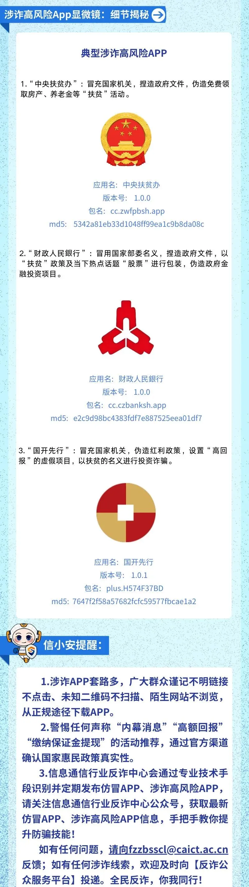 【平安宣传】赶紧卸载!官方通报:系盗用党徽、国徽近期工信部反诈工作专班发布通报:监测发现了一批伪造国家项目涉诈高风险App这些App通过盗用党徽、国徽等标志欺骗用户信任具有很强的迷惑性和危害性以下这些涉诈高风险App请大家擦亮眼睛注意甄别防止受骗↓↓↓来 源:工信部、平安鼎