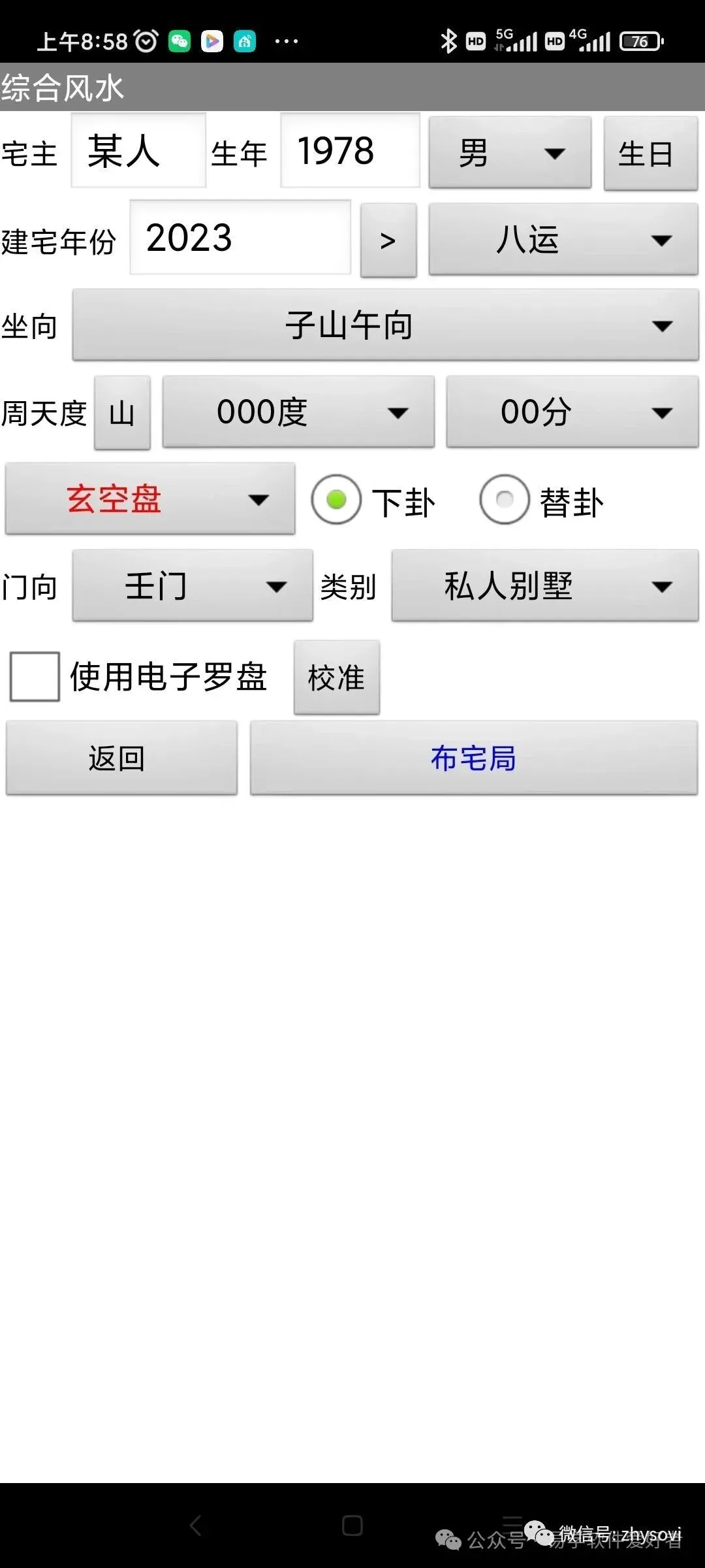 手机版最新综合风水软件(可以添加户型图,罗盘组合,及八宅玄空的详细分析),卖50元,需要的联系!
