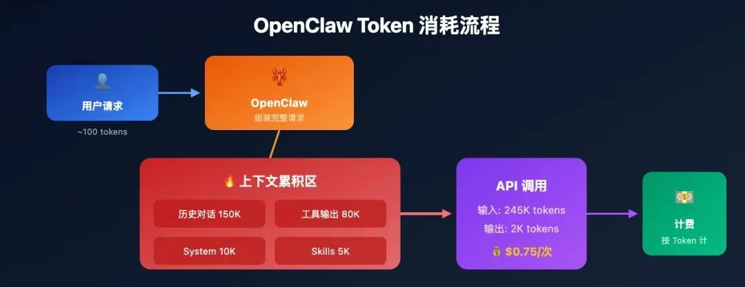 而这个过程并不仅限于一次,而是反复不断重复。一个复杂任务跑下来,调用次数可能是普通聊天的几十倍甚至上百倍。