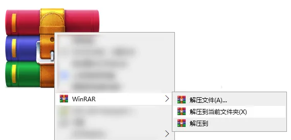 (以Winrar解压缩软件为例,win11及更高系统右击"显示更多选项"点击"解压到当前文件夹"。)
