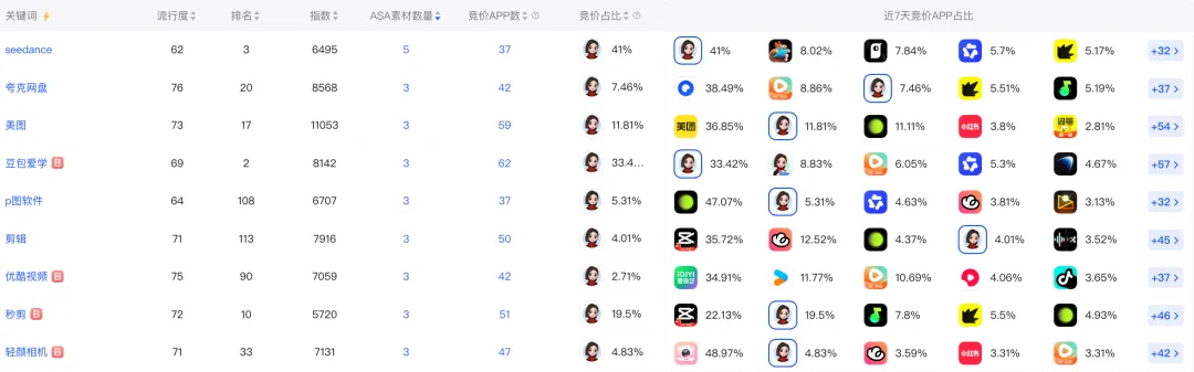 依托ASA 竞价词 / 素材 / 占比监控、竞品投放分析 API,打破投放黑箱: