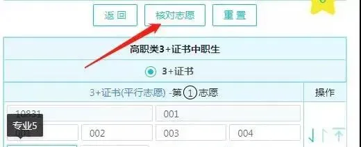填报完成后点击“核对志愿”,将会显示院校及中文名称。